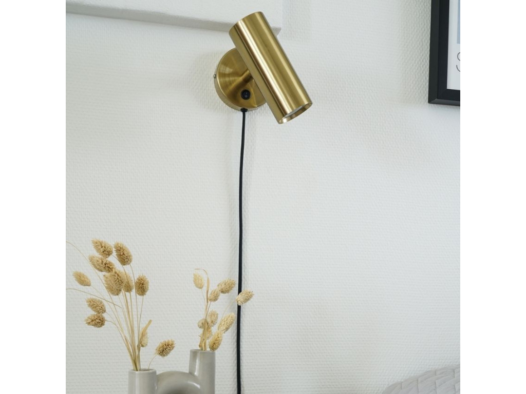 Zlaté nástěnné světlo Aris zaujme svou jednoduchostí a zároveň elegancí. Vynikne ve stylově a moderně zařízeném interiéru. Stínidlo i držák jsou vyrobeny z lakovaného kovu, což podtrhuje originalitu světla. Jeho osvětlení dokonale poslouží například na chodbě nebo v šatně.