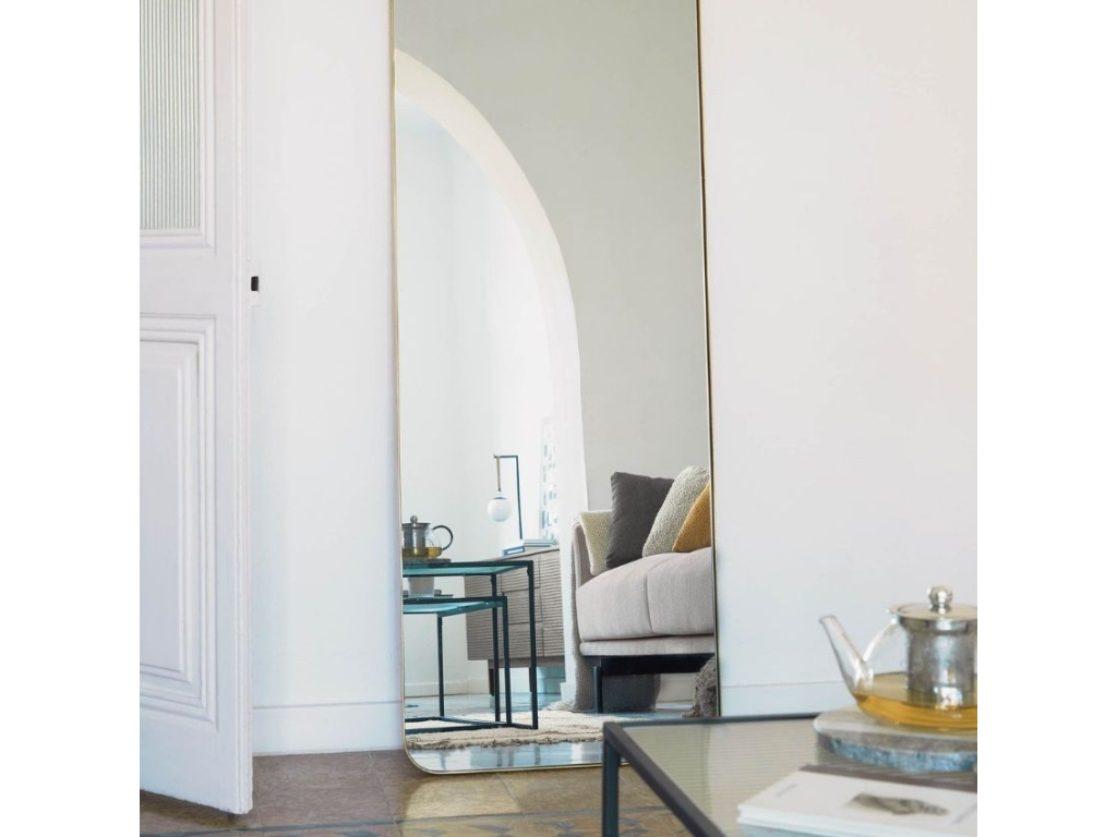 Prostorově výrazné zrcadlo Kave Home Marco je usazeno v jemném nenápadném rámu ze zlatě lakovaného kovu, díky kterému velká zrcadlová plocha skvěle vynikne. Zrcadlo můžete zavěsit vodorovně či svisle na zeď nebo ho jen jednoduše postavit na zem a opřít o zeď. Krásné zrcadlo Marco je dostupné také v menších velikostech. Bude se perfektně vyjímat v předsíni, v koupelně i v ložnici.