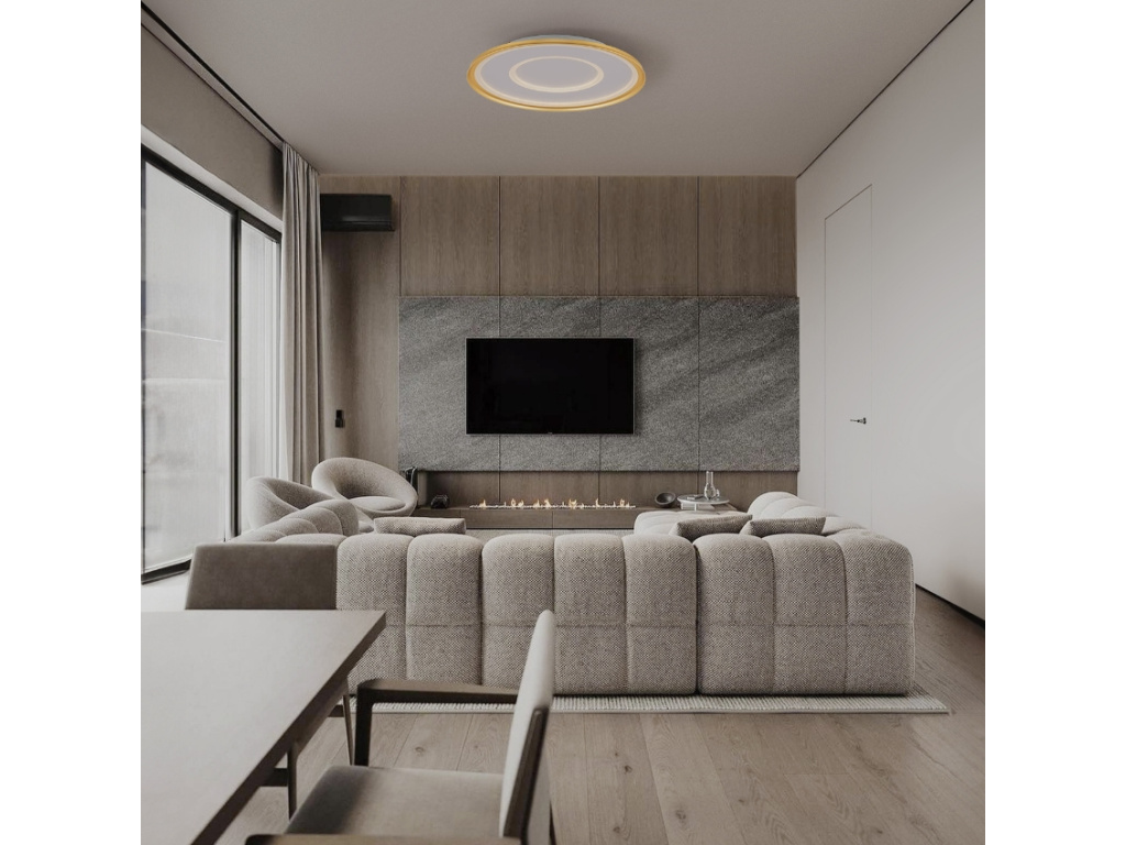 Toto stropní LED světlo Figin od značky Nova Luce je elegantní a moderní svítidlo vyrobené z oceli, hliníku a akrylu. Design světla je minimalistický s kulatým tvarem a zlatým rámečkem, který dodává prostoru nádech luxusu. Světlo je stmívatelné pomocí dálkového ovladače, což umožňuje přizpůsobit intenzitu osvětlení podle potřeby. Nabízí variabilní teplotu světla v rozmezí 2700–5000 K, od teplého až po studené bílé světlo, ideální pro různé nálady a příležitosti. Díky kombinaci kvalitních materiálů a praktických funkcí je toto svítidlo vhodné pro veškeré moderní interiéry.