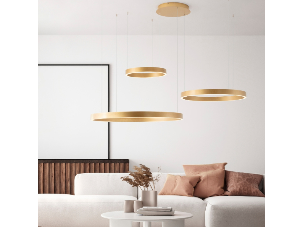 ProhlédnoutZlaté kovové závěsné LED světlo Nova Luce Elowen 148 cm