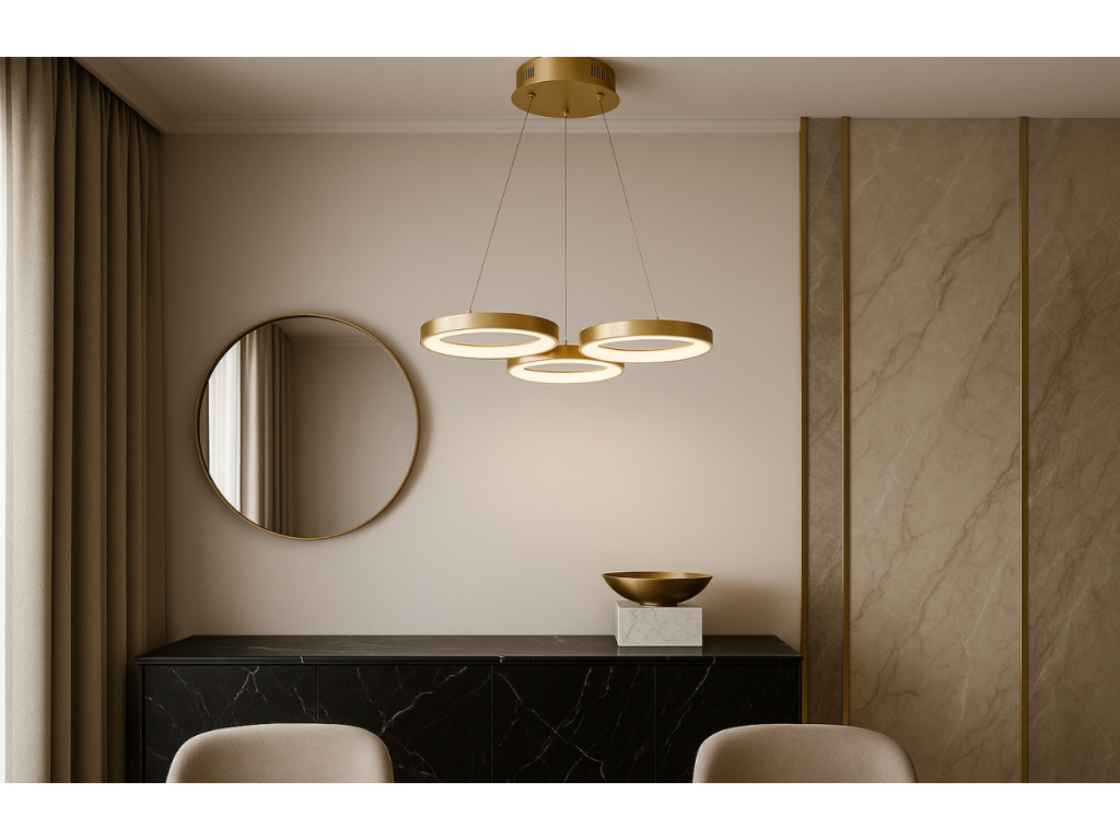 Pod taktovkou řecké značky Nova Luce byla vytvořena řada originálních inovativních světel. Jedněmi z nich jsou také exkluzivní závěsná světla ze série Magnus. Ta propojují nadčasový design, kvalitní materiály a funkčnost. Světla Magnus jsou vyrobena ze zlatě lakovaného hliníku a doplněna silikonovými LED pruhy. Ty vás okouzlí teplým bílým světlem, které prozáří celou místnost a dodá jí příjemnou hřejivou atmosféru. Svítidla jsou charakteristická kulatými prstencovými tvary, které se spojují v jedinečný celek a vytváří dokonalý doplněk do všech moderních minimalistických interiérů.
