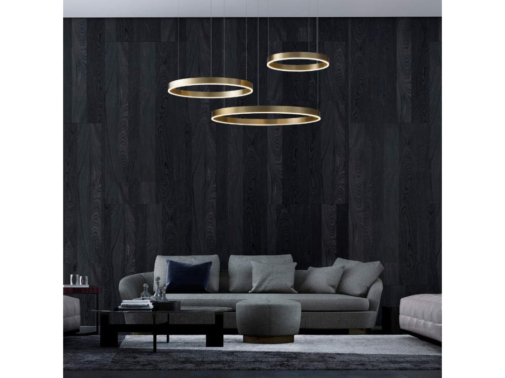 Exkluzivní závěsné světlo Motif propojuje nadčasový design, kvalitní materiály a funkčnost. Světlo Motif je vyrobeno ze zlatě lakovaného hliníku a doplněno silikonovými pruhy se zabudovaným LED osvětlením. To vás okouzlí teplým bílým světlem, které prozáří celou místnost a dodá jí příjemnou hřejivou atmosféru. Svítidle je charakteristické kulatými kruhovými stínidly, které se spojují v jedinečný celek a vytváří dokonalý doplněk do všech moderních interiérů.