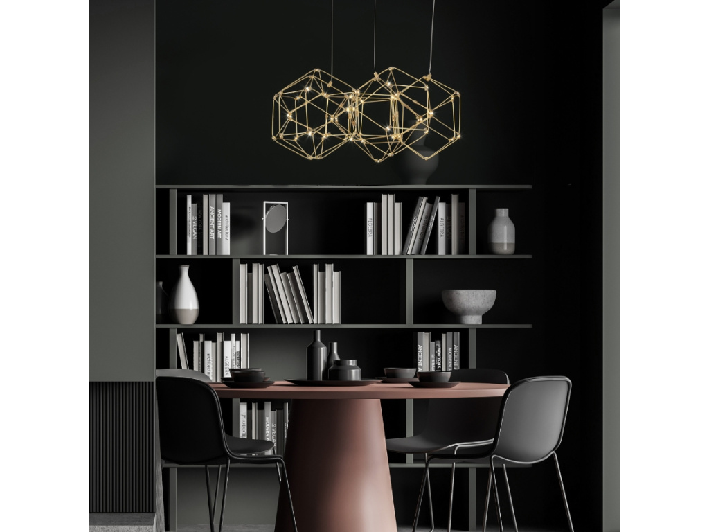 Originální kovové závěsné světlo Nebula od značky Nova Luce se ve vašem domově stane stylovým a krásným doplňkem. Jeho jedinečný vzhled je tvořený několika mnohoúhelníky, které mají sytý zlatý povrch. Každý z nich obsahuje vestavěné LED žárovky, které poskytují jasné světlo teplého tónu. Jeho moderní a elegantní design přidá luxusní vzhled jakémukoli prostoru a vytvoří v něm magickou atmosféru.