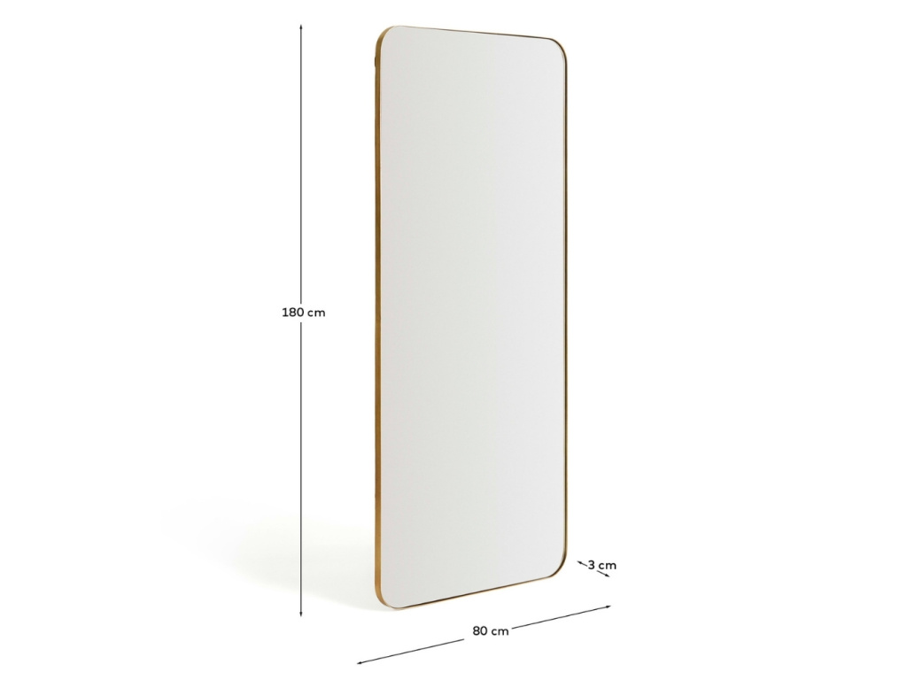 Zrcadlo Marco je nadčasový kousek, který opticky zvětší prostor a dodá interiéru elegantní akcent. Díky štíhlému obdélníkovému tvaru a zlatému kovovému rámu působí moderně a zároveň univerzálně – snadno se začlení do minimalistických, industriálních i klasických interiérů. Velkorysý rozměr 80 × 180 cm poskytuje pohodlný celopostní odraz, takže je ideální nejen do ložnice či šatny, ale i do předsíně nebo obývacího pokoje. Může být zavěšeno vertikálně i horizontálně, takže ho snadno přizpůsobite prostoru i vašemu stylu. Marco není jen praktickým pomocníkem, ale i designovým prvkem, který přinese do vašeho domova světlo, hloubku a moderní eleganci.