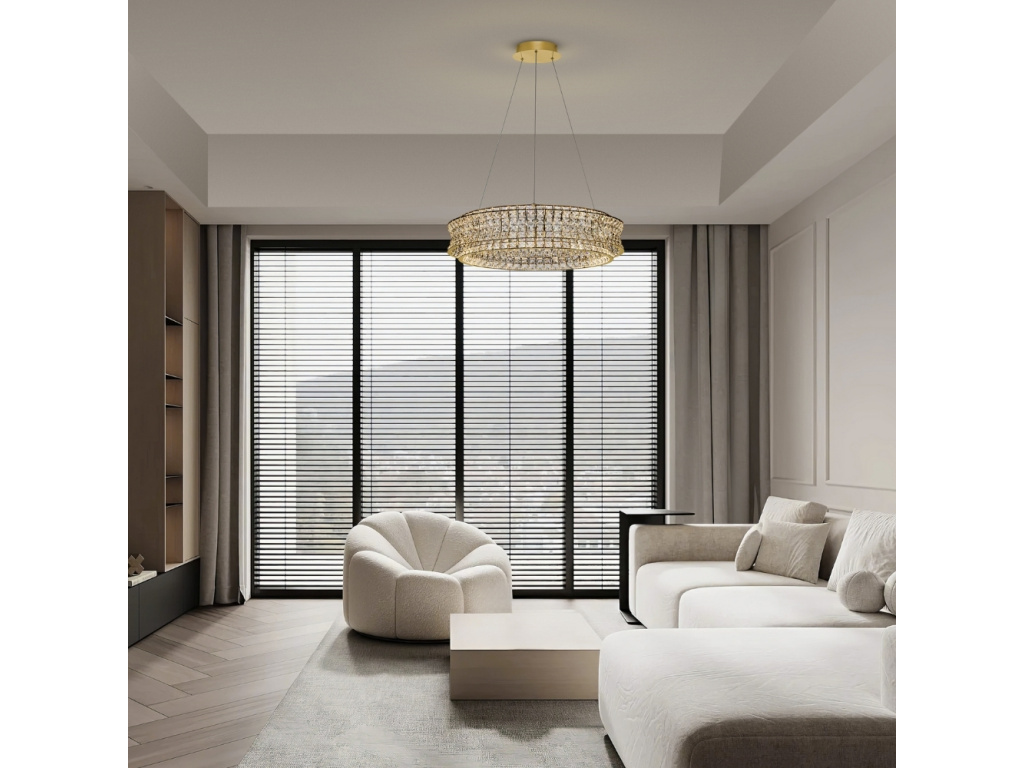 Závěsné světlo Celysia od Nova Luce je symbolem moderní elegance s nádechem luxusu. Jeho konstrukce z platinově zlaté nerezové oceli nese kruhový prstenec tvořený precizně broušenými křišťálovými segmenty, které nádherně odrážejí světlo a vytvářejí jemné odlesky po celém interiéru. Integrované LED osvětlení se světelnou teplotou 3500 K vyzařuje příjemně neutrální bílý tón a díky funkci stmívání umožňuje přizpůsobit intenzitu světla náladě i příležitosti. Celysia vynikne nad jídelním stolem, v elegantním obývacím pokoji nebo jako centrální prvek vstupní haly.