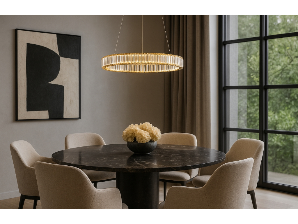 Elegantní, glamour a luxusní – to je originální závěsné LED světlo Aurelia od řecké značky svítidel Nova Luce. Prstencové kulaté stínidlo je vyrobeno z čirého křišťálového skla, které vytváří dokonalé světelné odlesky a celé místnosti tak dodají jedinečnou atmosféru. Světlo Aurelia skvěle zapadne do interiérů, laděných do glamour či art deco stylu. Doplnit ho můžete také stropním LED světlem ze stejnojmenné kolekce a vytvořit tak dokonale sladěný efekt.