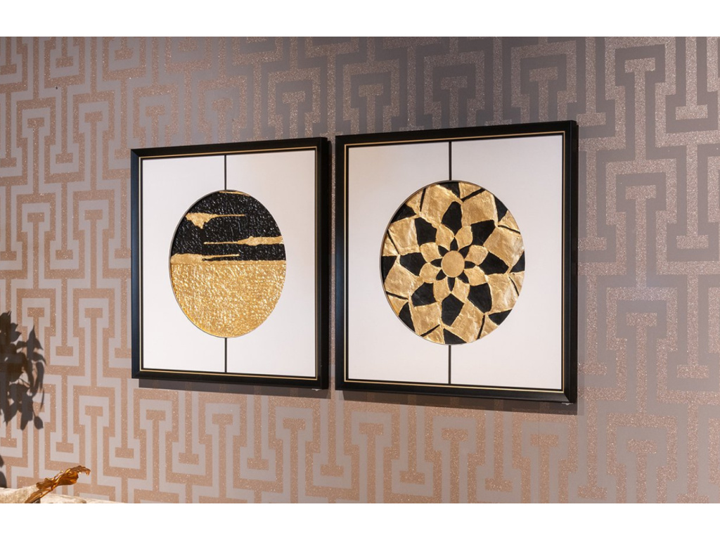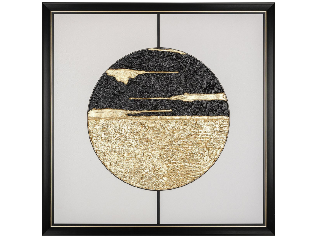 Moon od značky Richmond je působivá nástěnný obraz s motivem měsíce. Toto umělecké dílo vnese do vašeho domova živou a inspirativní atmosféru. Střed obrazu zdobí černo zlatý motiv měsíce, který obklopuje šedé pozadí. Celek je zasazený v rámu z černého MDF lemovaný zlatým pruhem, což má za následek elegantní kontrast se zbytkem obrazu. Na našem webu naleznete také obraz Sun, který Moon perfektně doplní.