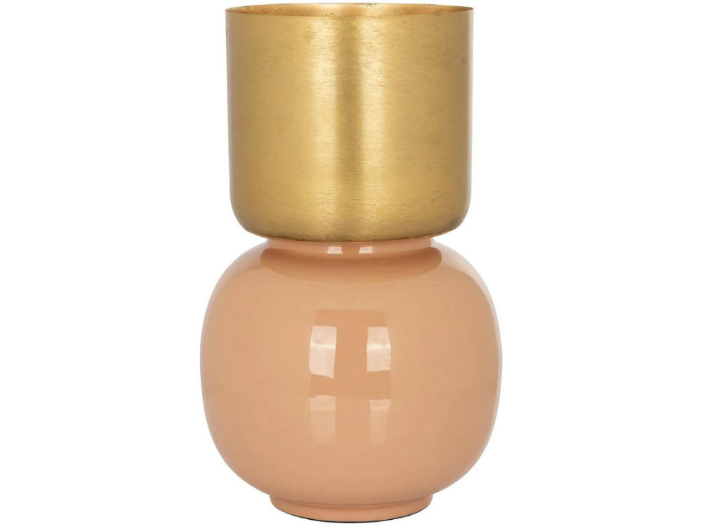Kovová váza Calla od značky Richmond bude úžasným doplňkem vašeho moderního interiéru. Zaujme její dvoubarevné, zlato oranžové provedení, které váze dodává na originalitě. Právě díky zlaté barvě působí váza elegantním dojmem a bude skvěle ladit s boho nebo glamour nábytkem a dekoracemi. Tuto vázu nabízíme také ve zlato-zelené variantě, která nese název Clover a liší se mimo barvy také svými rozměry.