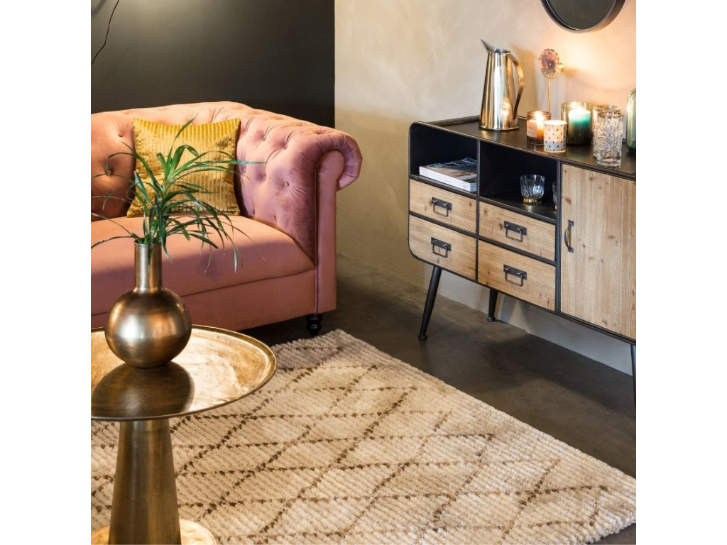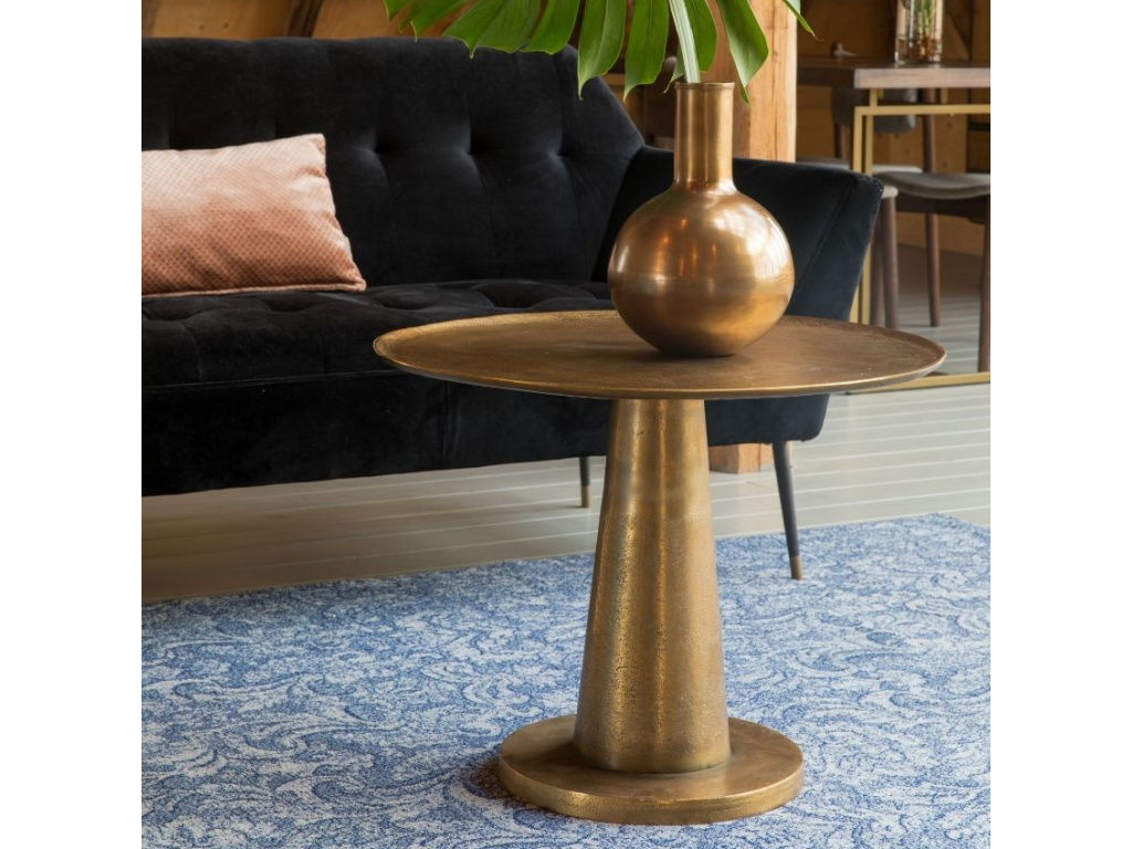 Inspirace čajovými stolky typickými pro marockou kulturu byla hlavním motivem k vytvoření zlatého konferenčního stolku Brute. Na rozdíl, od již zmiňovaných stolků je Brute větší a vyšší, avšak si zachovává svůj původní vzhled díky úchvatnému vintage lakování. Kuželovité tělo stolku pak skvěle propojuje kulatou desku a mohutný podstavec, který mimo jiné zajišťuje perfektní stabilitu. Brute se stane bezesporu nepostradatelnou součástí každého vintage interiéru.
