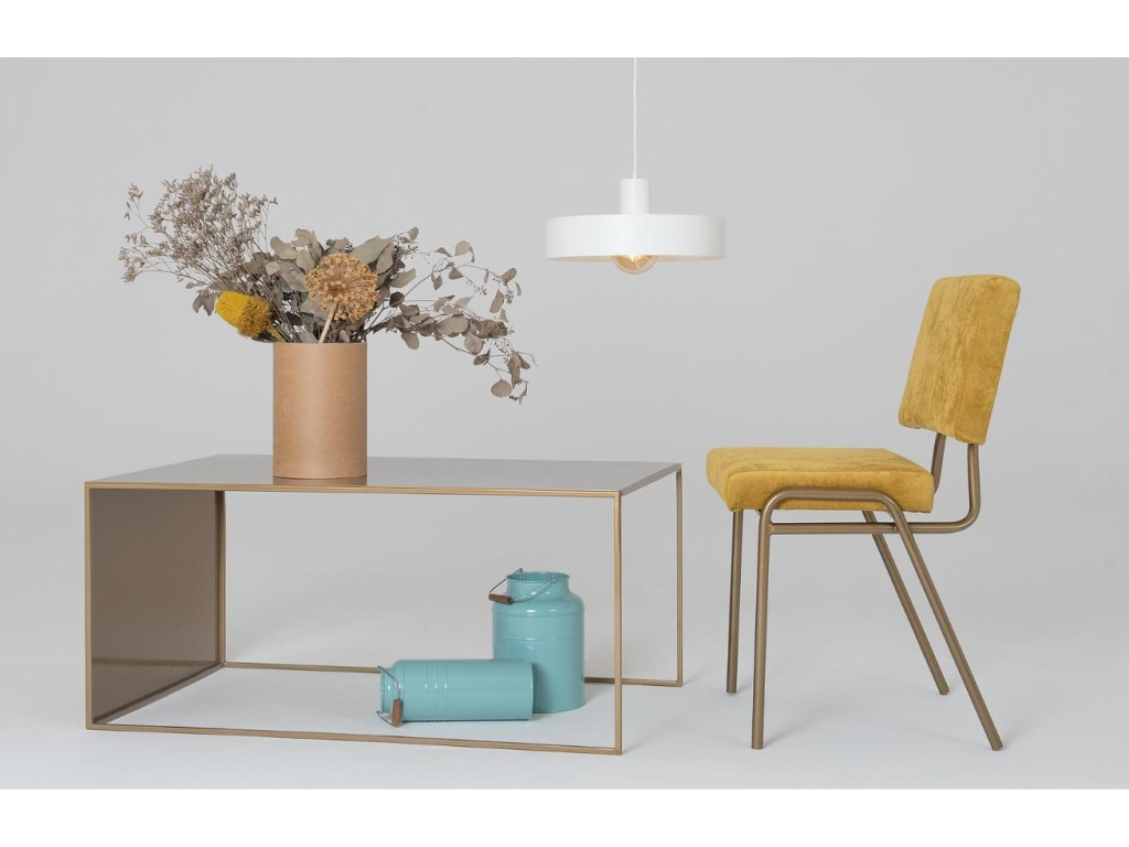 Konferenční stolek Gene vás na první pohled zaujme svým originálním vzhledem. Stolek má symetricky řešenou podnož, přičemž jedna strana je plná a dodává tak stolku atraktivní prvek. Zlatá kovová konstrukce navíc dodá vašim interiérům dokonalý, moderní a minimalistický vzhled.