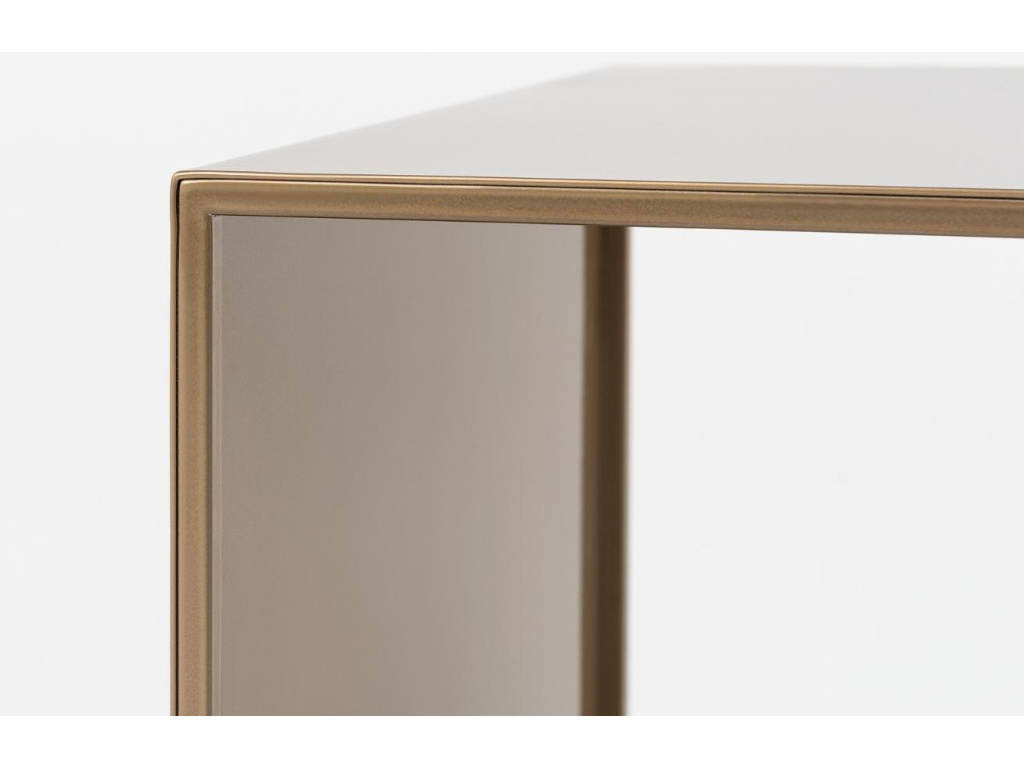 Konferenční stolek Gene vás na první pohled zaujme svým originálním vzhledem. Stolek má symetricky řešenou podnož, přičemž jedna strana je plná a dodává tak stolku atraktivní prvek. Zlatá kovová konstrukce navíc dodá vašim interiérům dokonalý, moderní a minimalistický vzhled.