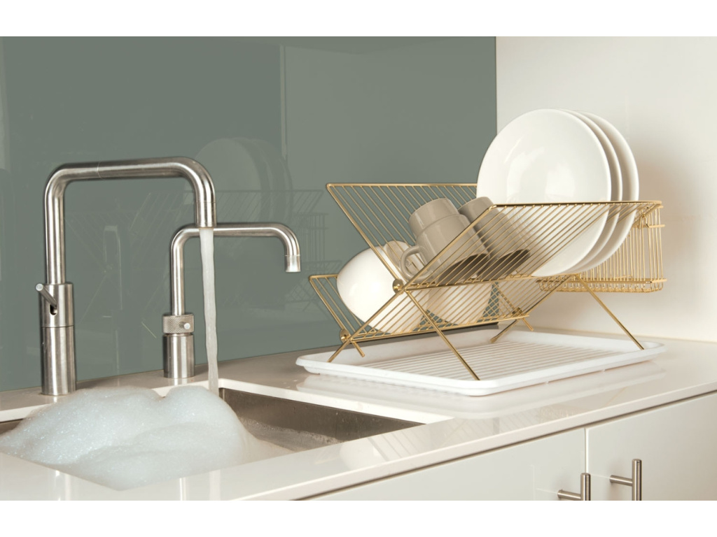 Zpříjemněte si mytí nádobí s odkapávačem Helgia. Jeho design dodá kuchyni elegantní a zároveň praktický prvek, který jistě oceníte. Kovová konstrukce zajistí dobrou stabilitu pro všechno vaše nádobí, které zrovna umýváte. Součástí odkapávače je i praktická miska na odkapávající vodu. Helgia pomocník vám poskytne více pracovního prostoru na kuchyňské lince a zároveň ji dodá styl – udělejte si radost!