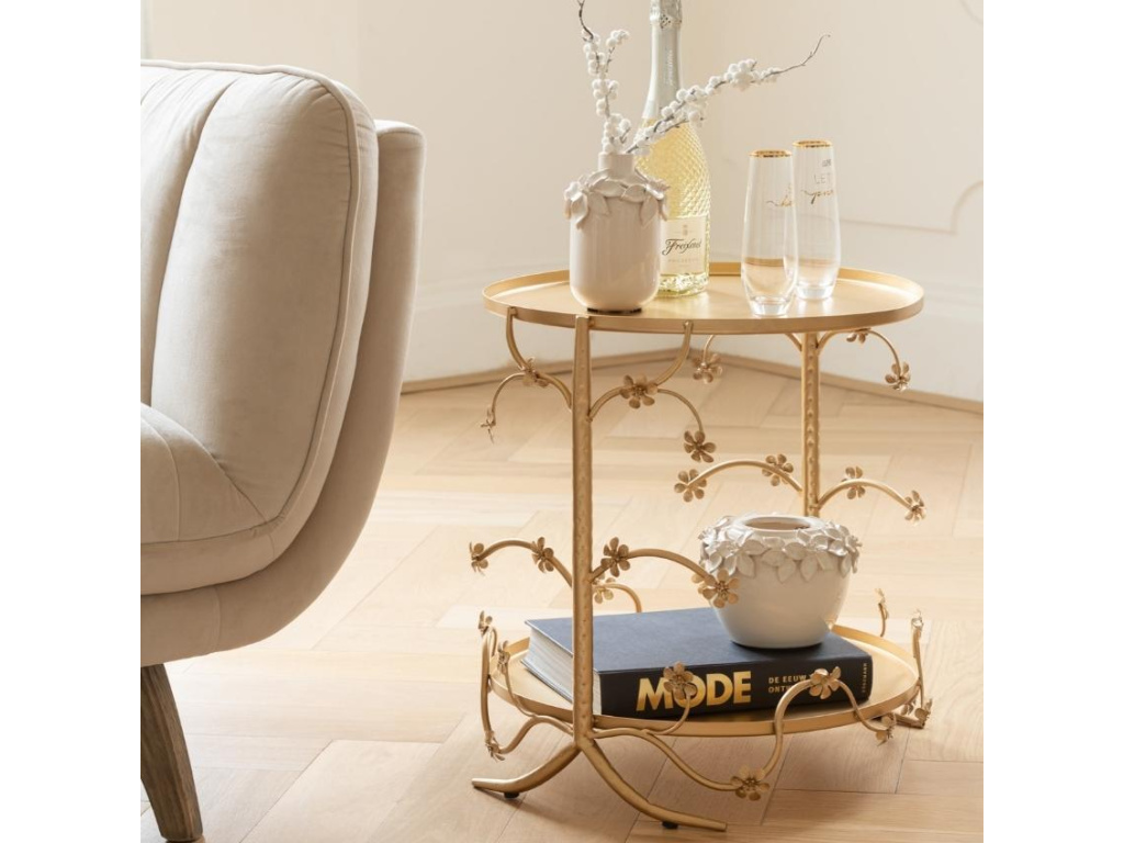 V případě odkládacího stolku Kathy od značky J-line se nemusíte bát extravagance. Něžný design, který pohladí na duši a každý moderní interiér rozzáří a dodá mu punc zlata. Kathy skvěle vynikne v ložnici, předsíni či dívčím pokoji, ze kterého se rázem stane královská komnata. Oblékněte svůj interiér do půvabného zlata, doplňte jej o decentní dekorace v paletě béžových a bílých tónů a užijte si náramnou podívanou.