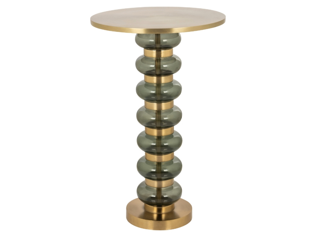 Deska a detaily podnože ze zlaceného hliníku dělají ze stolku Bowiene od značky Richmond nevšední kousek, který do vašeho interiéru vnese nádech luxusu. Hliníkové pruhy na podnoži jsou prokládány oblými skleněnými díly v elegantní zelené barvě a vytvářejí tak zajímavý efekt připomínající navlečené korálky. Díky svému vzhledu se stolek stane výrazným prvkem místnosti, který si získá pozornost. Použijte jej na odložení kávy nebo jako podstavec pro vystavení dekorací a květin.