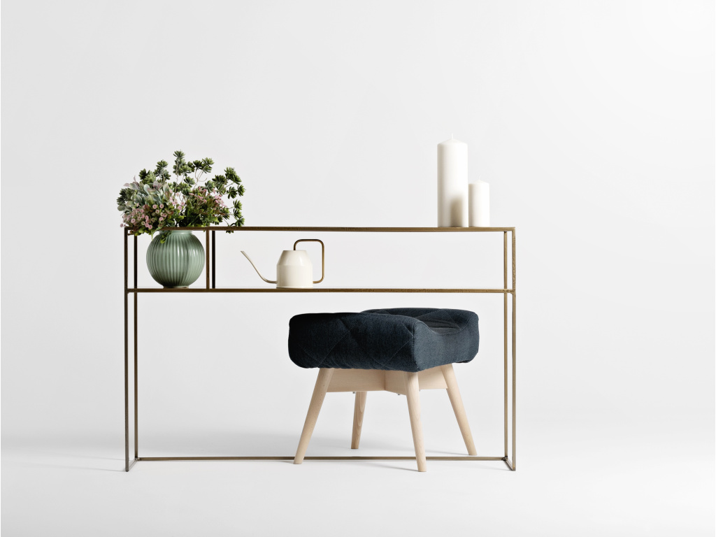 Elegantní toaletní stolek Moreno zaujme svým minimalistickým vzhledem. Celokovové zpracování ve zlaté barvě dodává stolku patřičnou stabilitu a osobitý industriální styl. Díky průřezu můžete do stolku libovolně umístit květinu či cokoliv jiného a vytvořit tak designový prvek ve vašem interiéru. Dalším bonusem je praktická police, kam hravě uložíte váš drobný inventář. Stolek se skvěle hodí do moderních interiérů.
