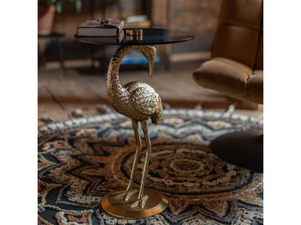 Kulatý odkládací stolek Crane se nechává inspirovat ve světě zvířat. Detailní propracování jeřába, podpírající skleněnou desku stolu je ústředním motivem celého designu. Díky těmto vlastnostem a elegantní zlaté barvě se stolek skvěle hodí do každého interiéru a zejména designového prostředí. Je určen pro každého, kdo hledá designově výrazný a zároveň odolný stůl.