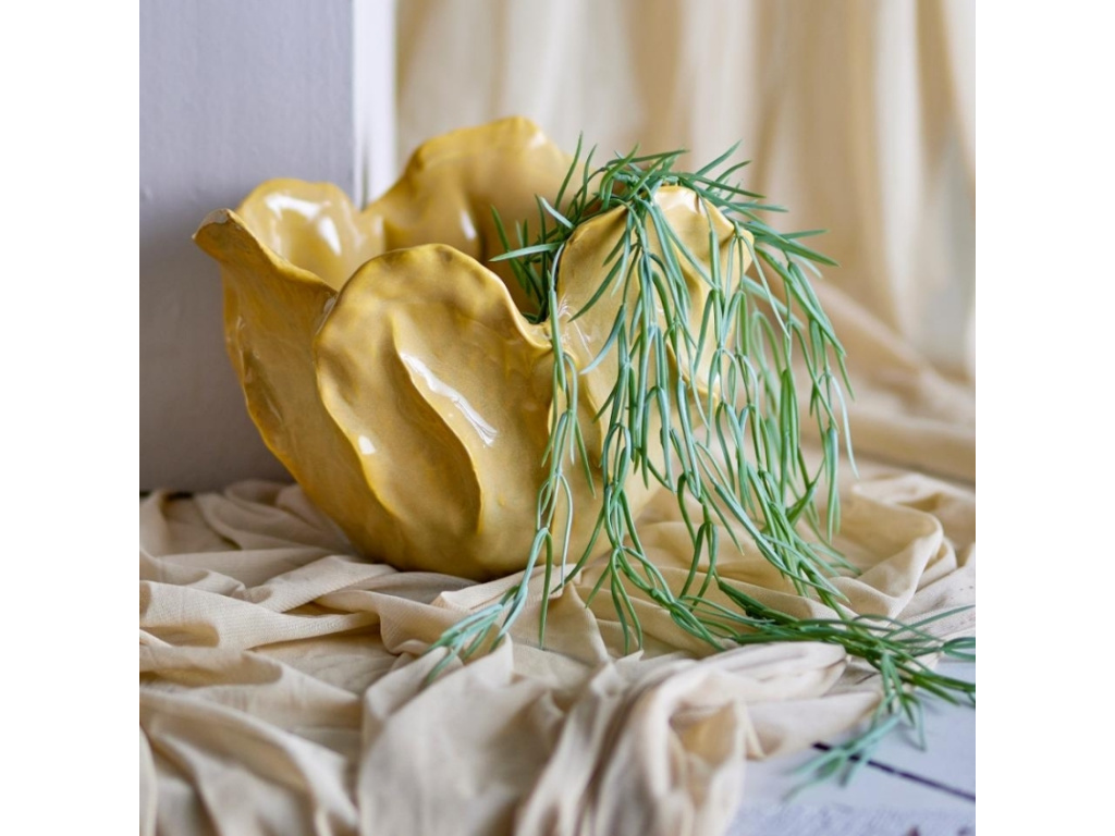 Mísa Bastien zaujme na první pohled svou zářivě žlutou barvou a neobvyklým tvarem připomínajícím květinu. Je ideální nejen pro servírování ovoce či pochutin, ale i jako samostatný dekorativní prvek na jídelním stole nebo komodě. Díky sochařskému zpracování dodá prostoru hravost a osobitost. Perfektně zapadne do interiérů s barevnými akcenty nebo boho stylem. Bastien oživí každodenní chvíle a rozzáří váš domov.