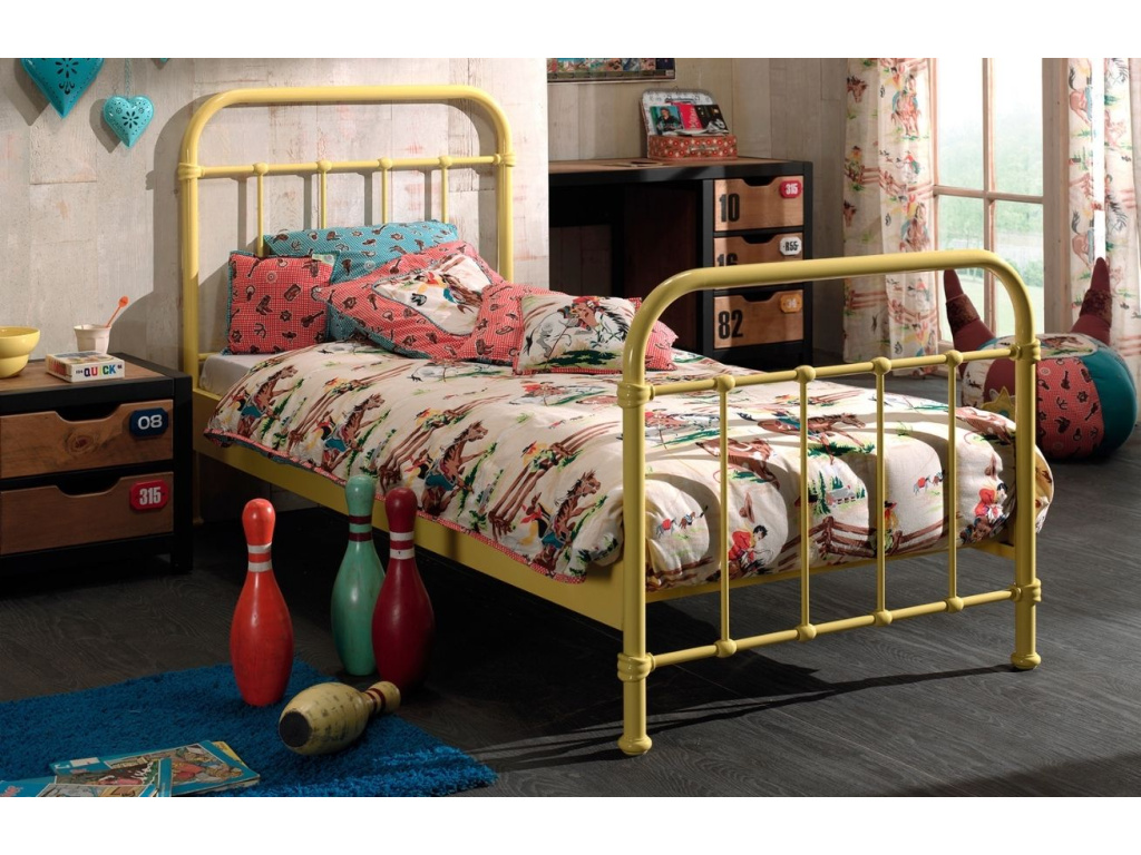Podívám seŽlutá kovová postel Vipack New York 90 x 200 cm