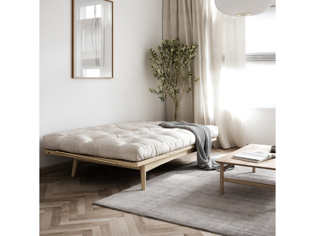 Třímístná rozkládací pohovka Folk značky Karup Design se stane vaším oblíbeným společníkem. Jednoduchým pohybem se elegantní pohovka promění na praktické lůžko. Konstrukce z masivního borovicového dřeva s FSC certifikací je doplněna kvalitní 14 cm vysokou futonovou matrací, která v sobě kombinuje recyklovaná vlákna a 4 cm pěnu. Praktickým detailem této pohovky jsou designové kovové opěrky, které snadno odepnete a vytvoříte tak postel pro dva. Folk se skvěle hodí do skandinávsky laděných domovů. Představuje skvělé řešení především pro menší interiéry, kde oceníte další místo na spaní. Vybrat si můžete z široké škály barev.
