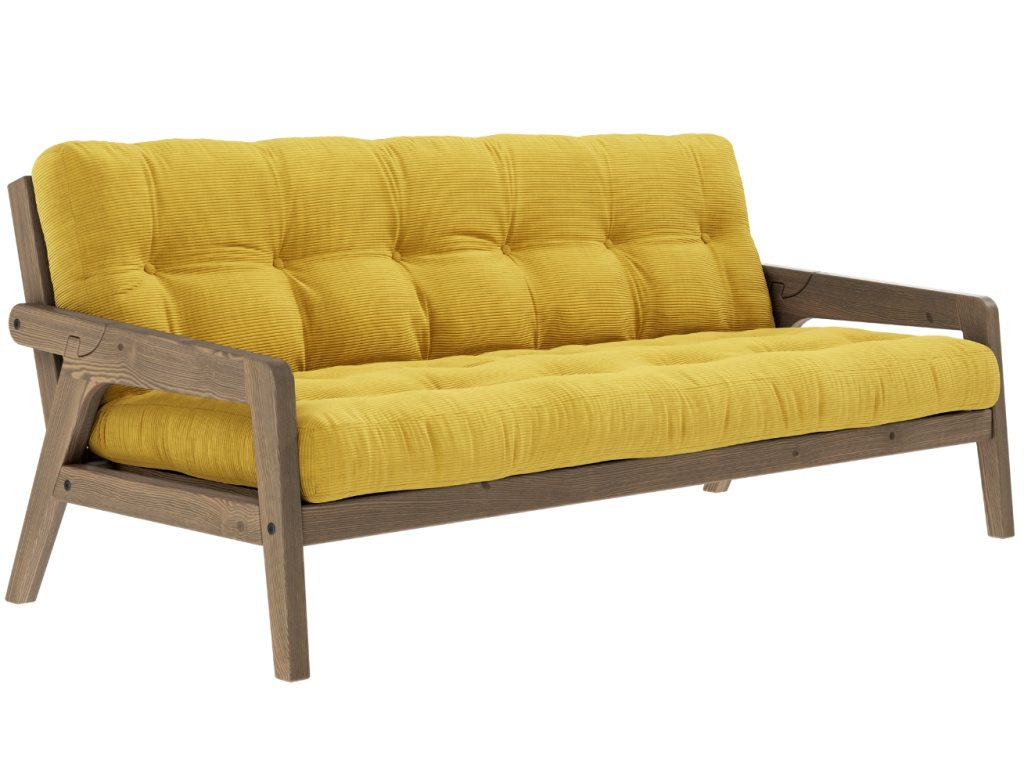 Třímístná rozkládací pohovka Grab značky Karup Design je dle slov designérů ideálním kouskem pro trávení společného času. Jednoduchým pohybem se elegantní pohovka promění na praktické lůžko. Konstrukce z masivního borovicového dřeva s FSC certifikací je doplněna kvalitní 14 cm vysokou futonovou matrací, která v sobě kombinuje recyklovaná vlákna a 4 cm pěnu. Praktickým detailem této pohovky jsou designové opěrky, které snadno odepnete a vytvoříte tak postel pro dva. Grab se skvěle hodí do skandinávsky laděných domovů. Představuje skvělé řešení především pro menší interiéry, kde oceníte další místo na spaní. Vybrat si ji můžete v další barvě konstrukce či v mnoha barvách matrací.
