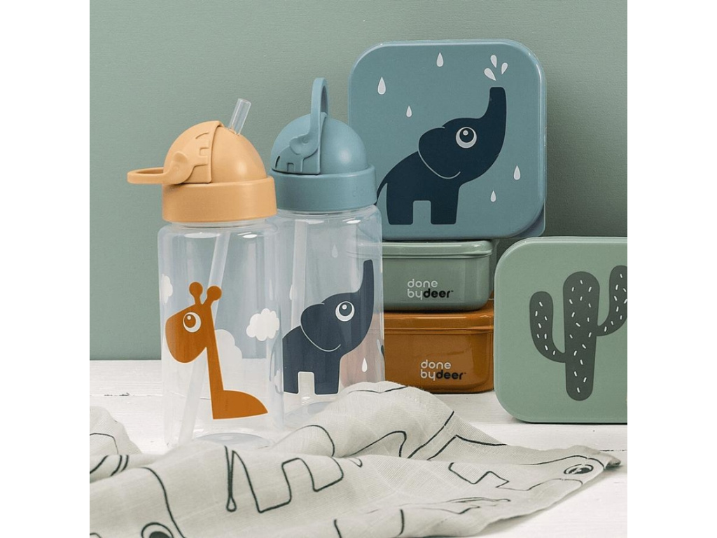 Plastová láhev od značky Done by Deer bude nepostradatelným doplňkem na cesty, výlety i do školy. Všechny malé dobrodruhy potěší obrázek roztomilé žirafy Raffi, která je bude kamkoliv doprovázet, a doplňovat pitný režim tak hned bude zábavnější. Praktické brčko se objeví po otevření víčka, po zavření se opět schová, a tím se zabrání vylití nápoje. Láhev je svojí velikostí snadno uchopitelná do dětských ručiček, a také tak akorát velká do dětského batůžku.