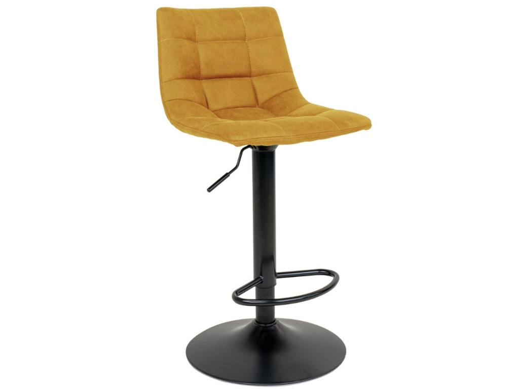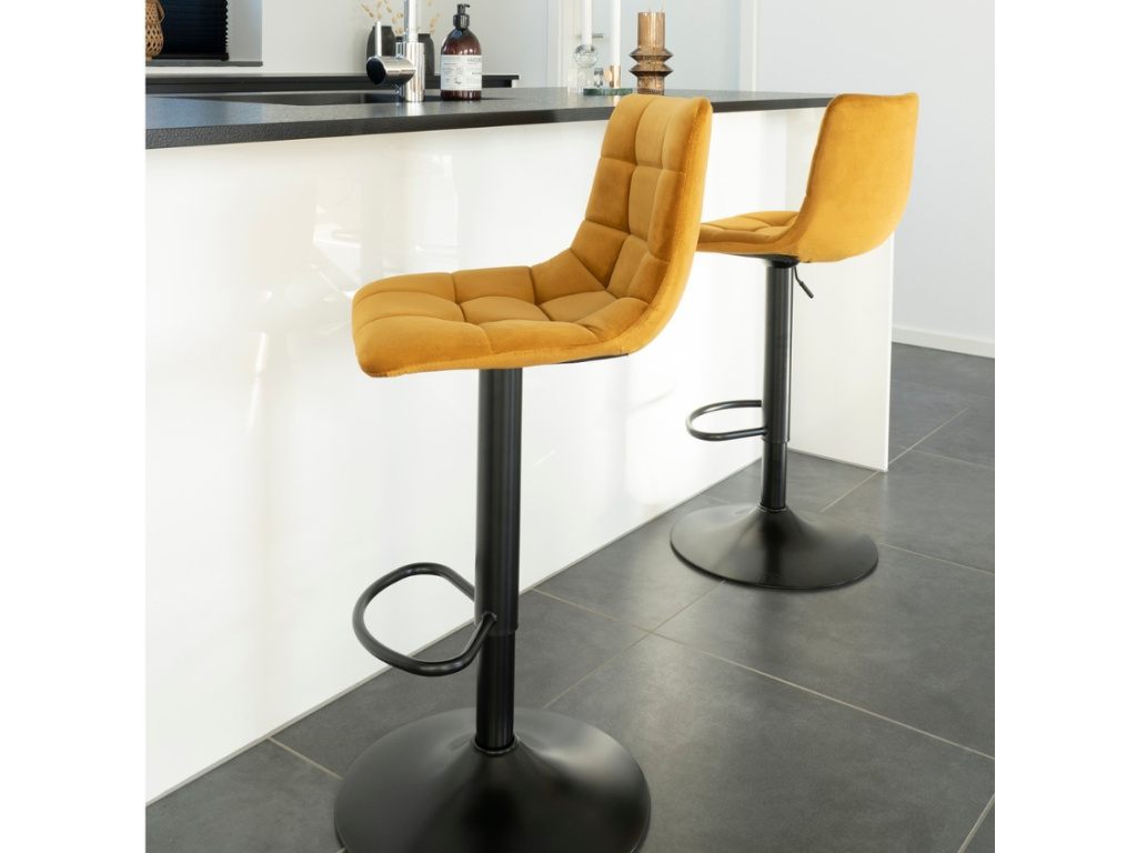 Stylová barová židle Nellie zaplaví interiér svým osobitým a stylovým provedením. Sedák je čalouněný hořčicově žlutou sametovou látkou a nabídne jen to nejlepší pohodlí. Celek dotváří elegantní prošívání a kovová podnož, která dodá produktu výraz a postará se o jeho originalitu. Příjemným bonusem je možnost židli výškově nastavit. Židle se skvěle hodí do moderních interiérů.