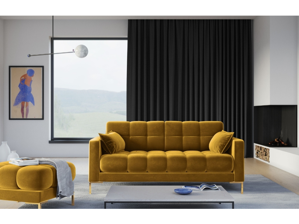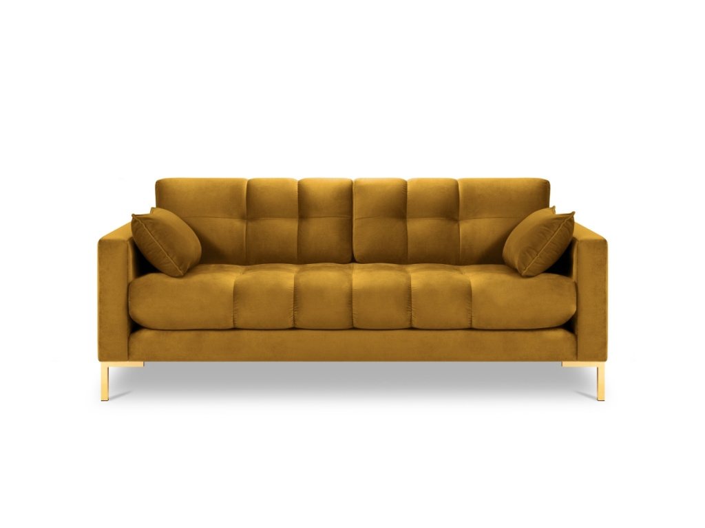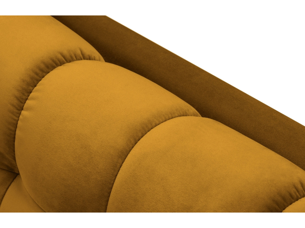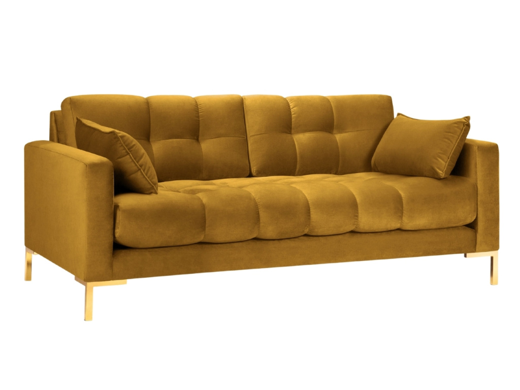 Elegantní dvoumístná pohovka MICADONI MAMAIA zaujme na první pohled svým nadýchaným vzhledem. Velmi příjemné sametové čalounění a zlatá kovová podnož vytváří kontrast, který interiéru dodá elegantní vzhled a nádech luxusu. Díky zajímavému prošívání vzniká jemný design, který do vašeho domova vnese lehkost a styl. Opěrné polštářky zvednou úroveň vašeho odpočinku o stupeň výš. Nechte se obklopit komfortem ve společnosti pohovky Mamaia.