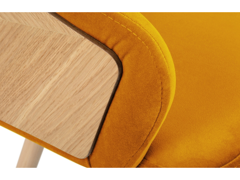 Nábytek, který nabízí bezkonkurenční pohodlí a jedinečnost zároveň? To je jídelní židle Tucan od značky Windsor & Co! Jednoduché a čisté linie splňují podmínky pro nadčasový design a pohodlí při dobrém jídle. Maximální komfort je zajištěn pomocí kombinace měkkého polstrování a sametového potahu s jemným leskem ve žlutém provedení, které vás neomrzí ani po hodinách sezení. Celek doplňuje podnož a prostorné opěradlo z masivního bukového dřeva a překližky. Díky použitým materiálům je židle nejen velmi odolná, ale i snadná na údržbu. Pozvedněte svoji jídelnu tímto designovým kouskem, který bude bezpochyby dominantou vašeho interiéru. Tucan je výbornou volbou do moderních a minimalistických interiérů. Na výběr je z několika barev, takže si určitě vyberete kousek přímo do vašeho domova.