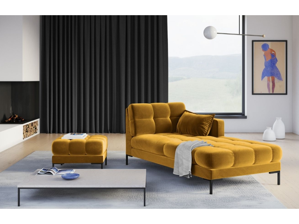 Elegantní lenoška MICADONI MAMAIA zaujme na první pohled svým nadýchaným vzhledem. Velmi příjemné sametové čalounění a kovová podnož vytváří kontrast, který interiéru dodá elegantní vzhled a nádech luxusu. Díky zajímavému prošívání vzniká jemný design, který do vašeho domova vnese lehkost a styl. Opěrný polštářek zvedne úroveň vašeho odpočinku o stupeň výš. Nechte se obklopit komfortem ve společnosti lenošky Mamaia.