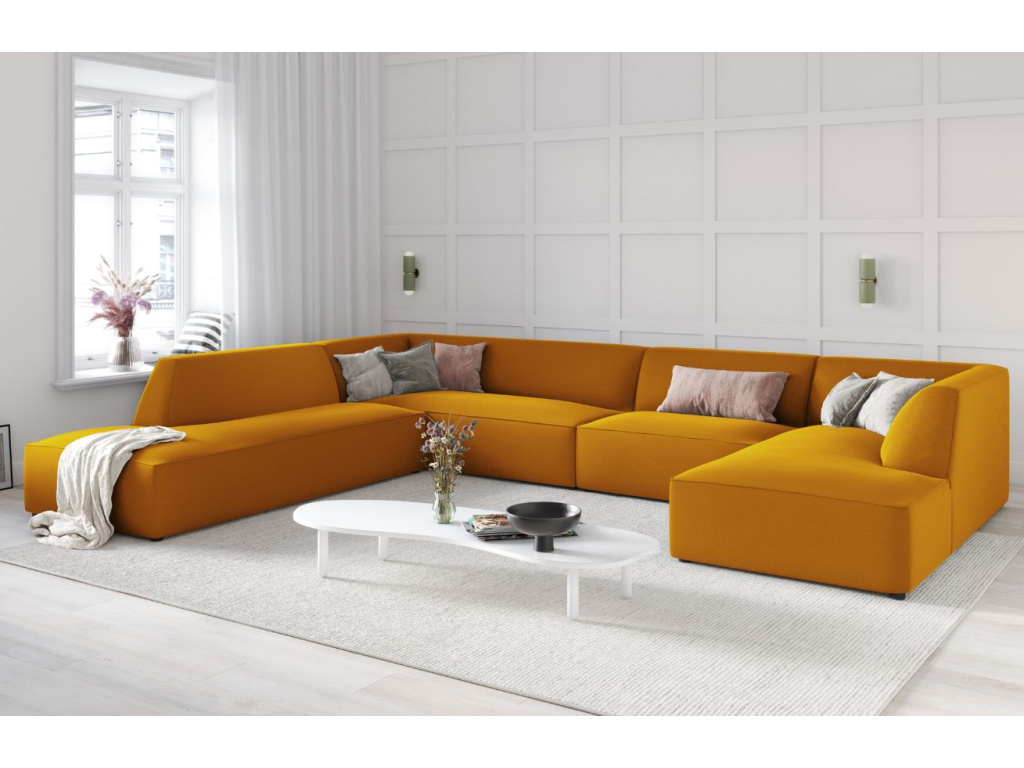 Rohová pohovka Ruby od společnosti Micadoni se stane příjemným doplňkem vašeho obývacího pokoje nebo společenské místnosti. Příjemné sametové čalounění s mírným leskem obsahuje ochranu, která zpomaluje absorpci tekutin – tekutina se shromažďuje na povrchu materiálu, aniž by pronikla hluboko do vláken. Díky tomu lze snadno odstranit rozlitou kávu nebo čaj během několika vteřin pomocí savého hadříku nebo papírové utěrky. Látka navíc prošla testem na cigarety, kdy je čalounění odolné proti tlení a vznícení. Kombinací různých modulů a velikostí pohovky si můžete vytvořit různé konfigurace sezení a získat si tak útulné posezení podle svých představ. Sezení Ruby doporučujeme spojit s jednoduchým konferenčním stolkem, na který můžete umístit svíčky, dekorace nebo občerstvení, a vytvořit tak jednoduchou, ale sofistikovanou skandinávskou obývací sestavu.