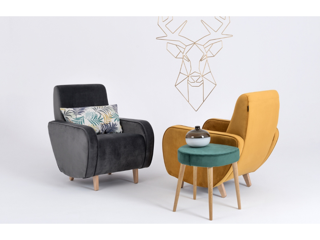 Elegantní křeslo Doble si vás okamžitě získá svým stylovým zpracováním, které v sobě skloubí originální design a velkou dávku pohodlí. Příjemné sametové čalounění je doplněno o designový prvek v podobě jedné řady knoflíků, které dodávají křeslu jistou osobitost a charakter. Křeslo se skvěle hodí například do obývacího pokoje, kde ho můžete doplnit stojací lampou a odkládacím stolkem a vytvořit tak útulný čtecí koutek.