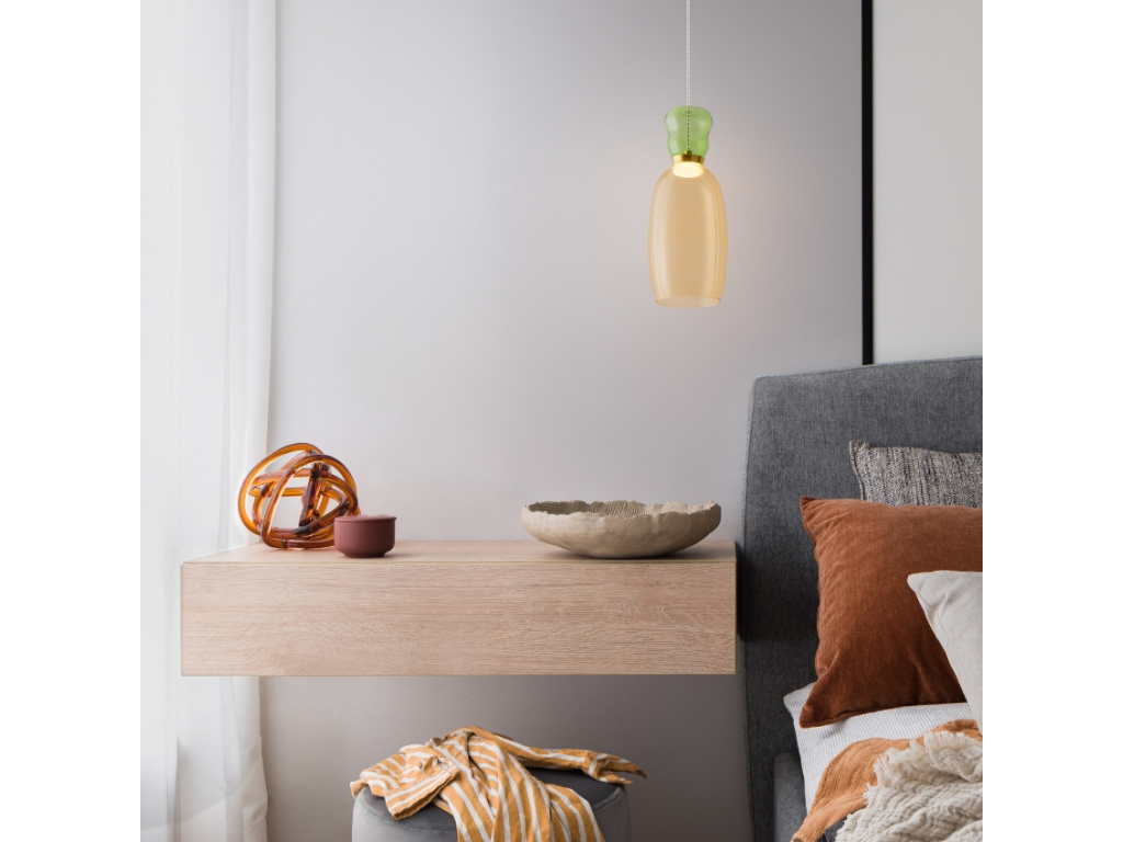Více infoŽluto-zelené skleněné závěsné LED světlo Nova Luce Pluma 15 cm