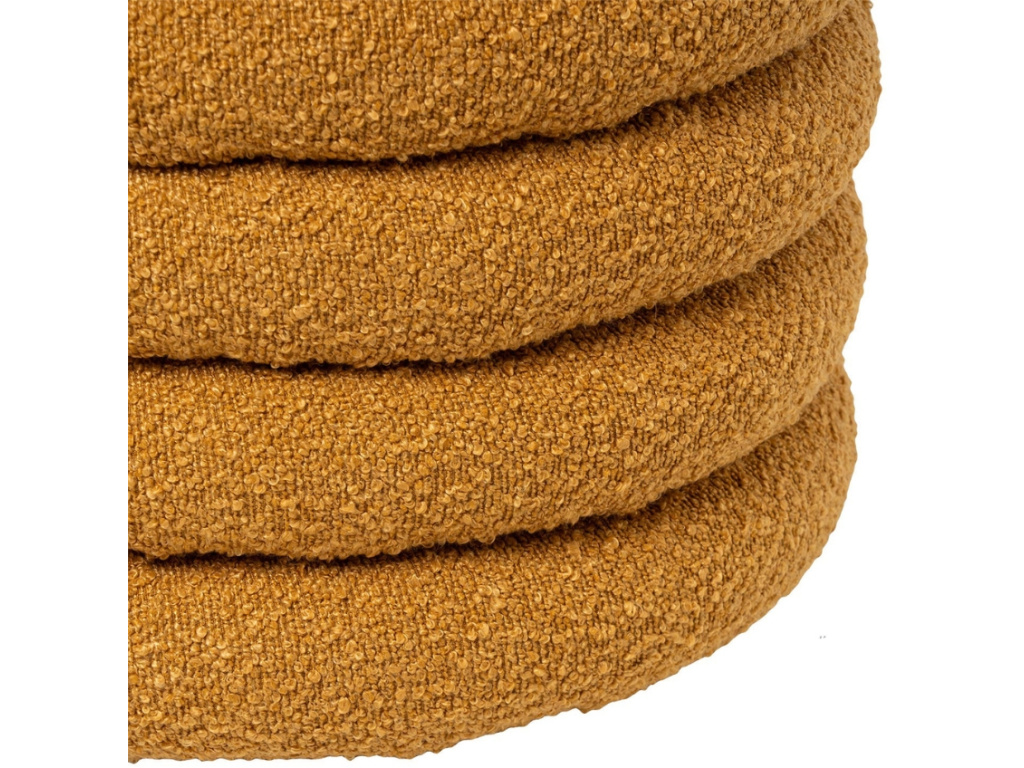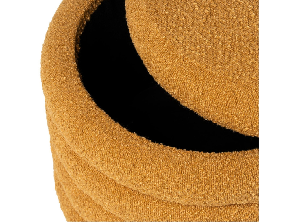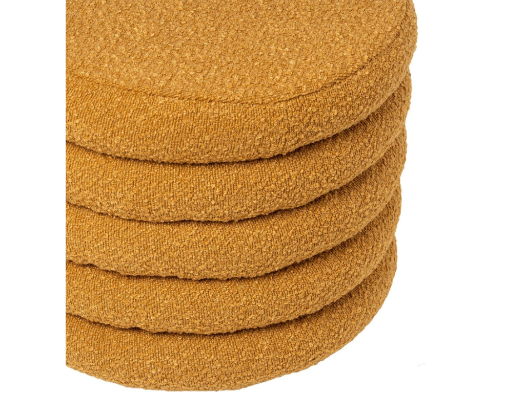 Taburet Harry v sobě spojuje hravý design a praktické využití, díky čemuž se stane stylovým i funkčním doplňkem každého moderního interiéru. Hořčicově žlutá bouclé látka se postará o estetický dojem, zatímco skrytý úložný prostor umožní snadno uschovat drobnosti, které chcete mít po ruce, ale ne na očích. Taburet skvěle zapadne do obývacího pokoje vedle pohovky, ložnice nebo dětského pokoje, kde poslouží k sezení i úschově hraček.