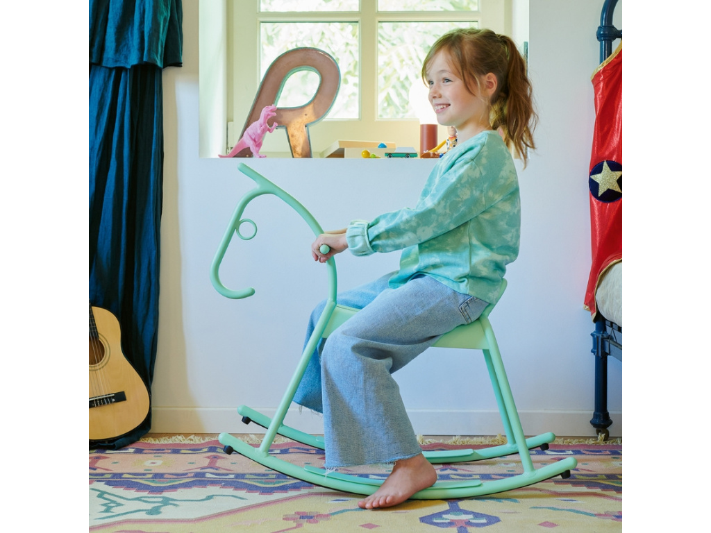 Houpací kůň Adada od Fermob bude tím nejzábavnějším doplňkem do dětského pokoje i na zahradu. Lehký, ale pevný hliníkový rám zajistí snadnou manipulaci a zároveň maximální bezpečnost při houpání. Díky speciálním podložkám nezanechá žádné stopy na podlaze, takže ho bez obav umístíte i na dřevěné parkety. Nadčasový design skvěle zapadne do moderně zařízeného interiéru i venkovního prostoru. Z koně Adady se stane oblíbená hračka vašich dětí, ale i stylový prvek jejich dětského světa.