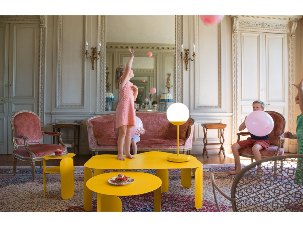 Podívám seŽlutý kovový zahradní konferenční stolek Fermob Bebop 80 cm