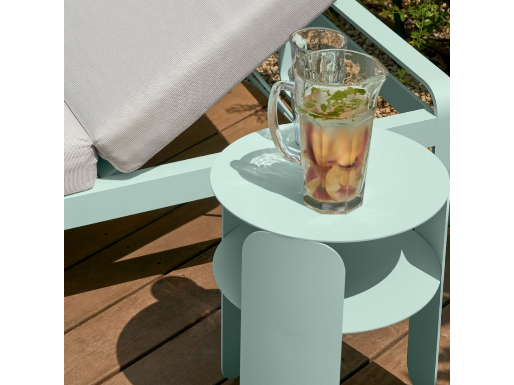 Zahradní odkládací stolek se vyrábí z prvotřídních materiálů a je testován tak, aby splňoval standardy kvality evropských norem (NF EN 581-1 a NF EN 581-2). Exkluzivní systém antikorozní úpravy pro venkovní použití a anti-UV práškový lak (standardizované testy AFNOR) z něho dělá praktického a odolného společníka na zahradu, terasu, ale i do interiéru, kde může v zimních měsících sloužit jako stolek na květiny. Zkombinovat ho lze snadno a variabilně s dalšími variantami stolků z kolekce Bebop.