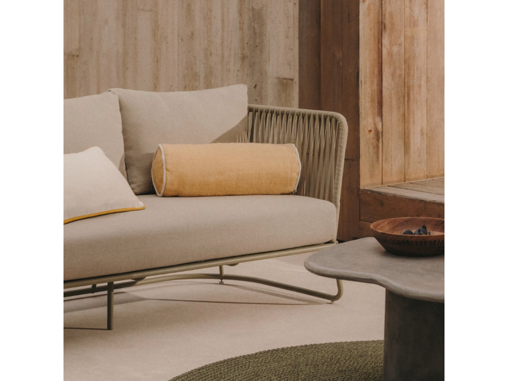 Dodejte svému kulatému polštáři nový design se žlutým povlakem Savina od Kave Home. Díky odolnému materiálu je polštář vhodný pro vnitřní i venkovní prostory, a tak jím můžete ozdobit vaši zahradní pohovku či lehátko. Povlak je ručně tkaný ze 100% recyklovaných PET vláken. Tato vlákna se snadno čistí a jsou odolnější vůči venkovním teplotám. Vybírejte ještě z dalších dvou atraktivních barev a dodejte vašemu posezení nový nádech!