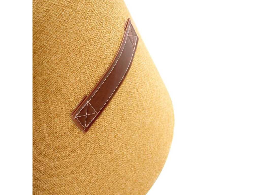Moderní velice jednoduchý taburet Somcasa Kenny je čalouněný žlutou hrubou látkou s krásnými detaily. Velice praktická úchytka na straně taburetu usnadňuje přenášení. Sedací část je prošívaná knoflíkem v hnědé barvě což vytváří zajímavý kontrast se žlutou plochou.